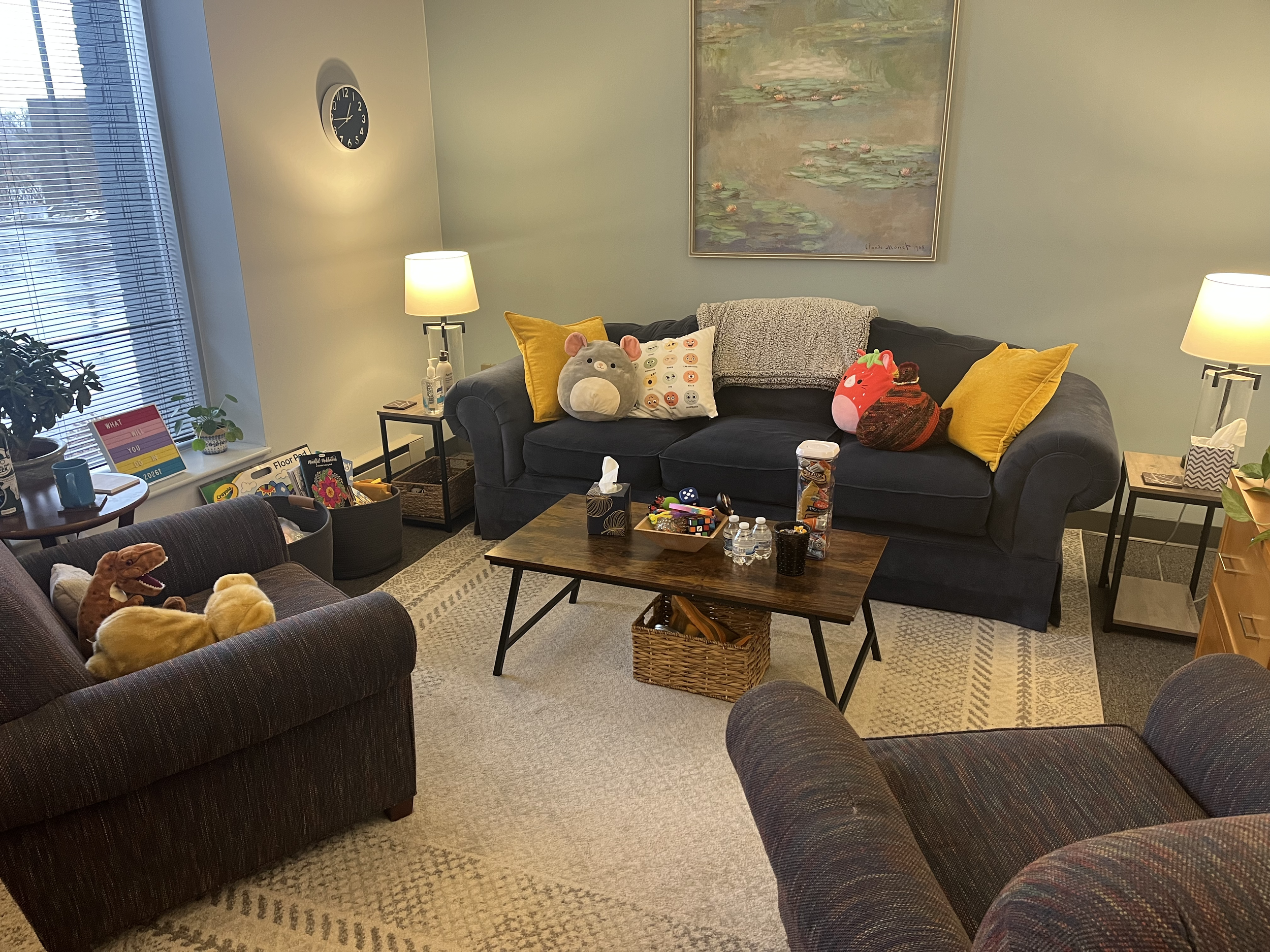 Please note that I share an office with a therapist who brings a dog with her to work. If this makes in-person appointments an issue, please let me know ahead of time so we can make accommodations.